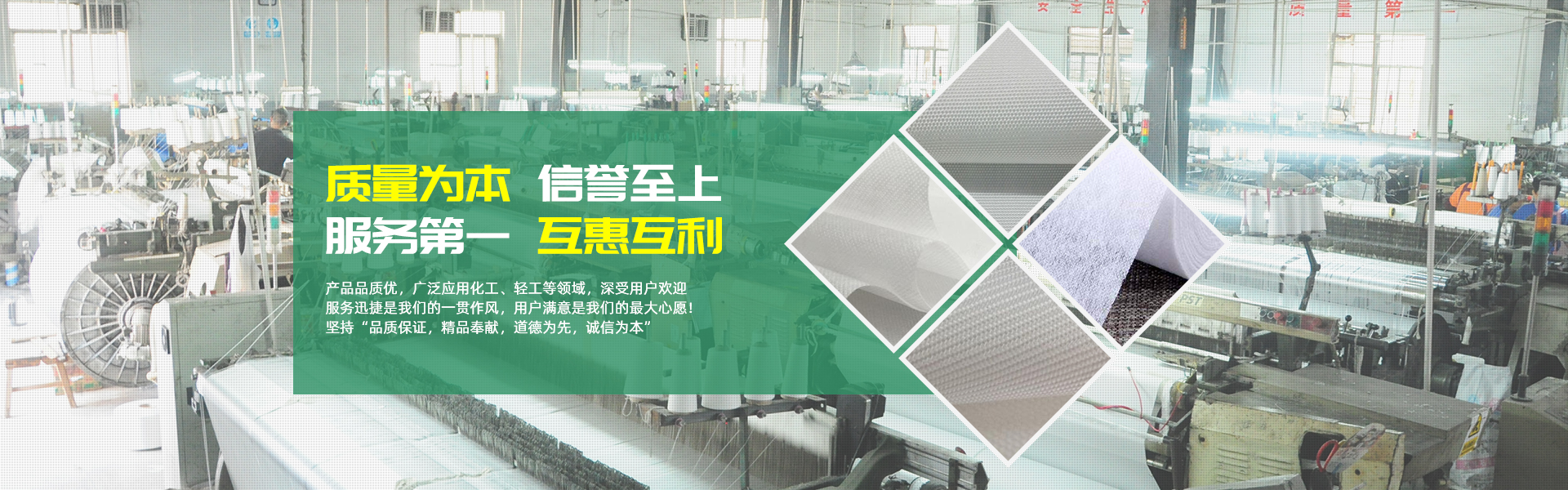 天臺(tái)縣江南濾網(wǎng)有限公司成立于1996年,是一家專業(yè)生產(chǎn)丙綸濾布、滌綸濾布、單絲濾布等各類壓濾機(jī)濾布、離心機(jī)濾布等過(guò)濾產(chǎn)品的現(xiàn)代化企業(yè),經(jīng)過(guò)多年不懈的努力,公司已發(fā)展成為占地面積1.5萬(wàn)平方米,建筑面積2萬(wàn)余平方米,擁有自己的研發(fā)團(tuán)隊(duì),3個(gè)專利項(xiàng)目。擁有30多臺(tái)進(jìn)口必佳樂(lè)PICANOL機(jī)織過(guò)濾設(shè)備...